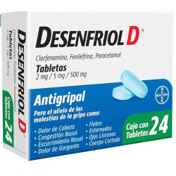 Desenfriol D Tabletas, está indicado para el alivio de los síntomas asociados con la rinitis alérgica y el resfriado común.